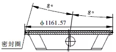 硬密封蝶閥的密封面是斜錐面,閥體密封圈(圖1)與蝶板組合件密封圈(圖2)的接觸為面接觸,其工作原理是靠驅動裝置扭力直接帶動蝶板組合件,使蝶板組合件密封圈與閥體密封圈充分接觸后產生彈性變形而密封。硬密封蝶閥作為一種高性能閥門,具有耐腐蝕性好、密封可靠、開啟力矩小等優點。硬密封電動蝶閥DN1200,其中閥體密封圈材料為1Cr18Ni9Ti,蝶板組合件密封圈材料為復合的不銹鋼板與石棉板夾層組合件,閥體密封圈與蝶板組合件密封圈的加工質量直接決定蝶閥密封性能。