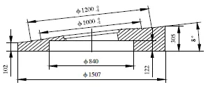 1,先在2.5m立車上分別把蝶板和壓環上的各止口加工到圖紙要求尺寸,外圓不加工;